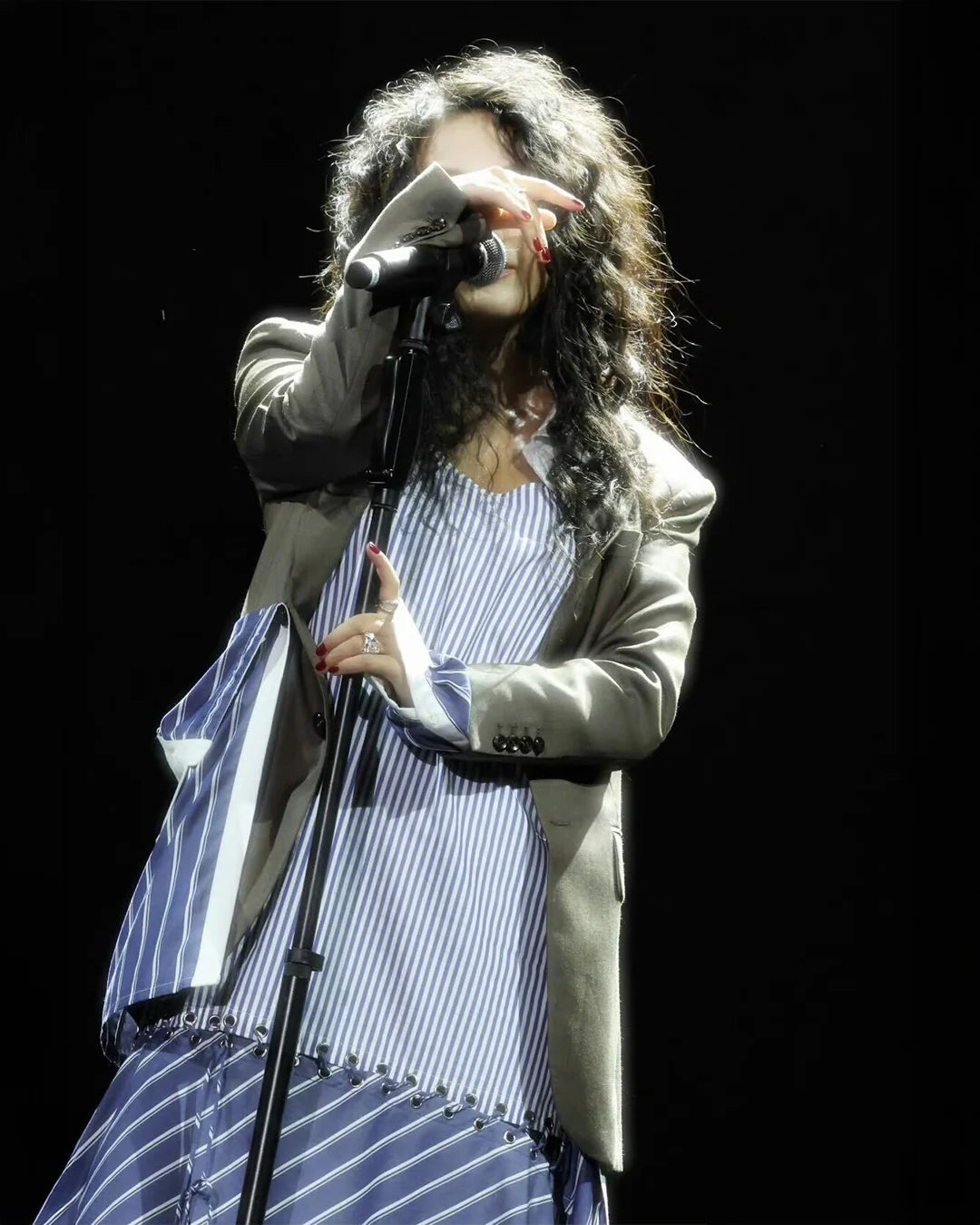 Shan Yichun transforms denim into contemporary statement-making on Chinese variety television, wearing SHAO's C...